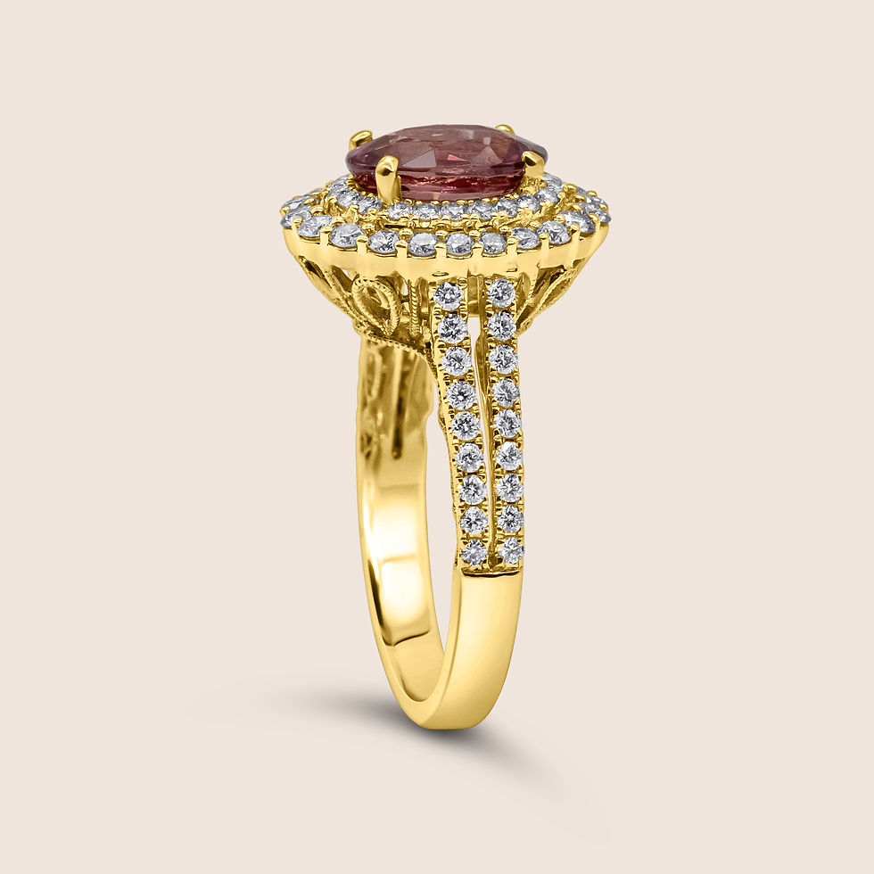 18 Karat Yellow Gold Pinkish/Purple Sapphire Engagement Ring